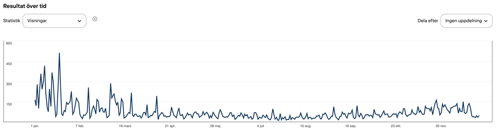 Under 2025 valde jag att testa Pinterest lite mer seriöst för att se vilka resultat det kunde ge i form av visningar, engagemang och trafik till webbplatsen. Från en rivstart med ett inlägg om dagen den första månaden, till tre inlägg i veckan under våren. Innan jag kom av mig. Materialet tog slut och jag orkade inte längre stöpa om det i ny form och posta igen. Så vad blev resultatet av en halvdan insats på Pinterest?