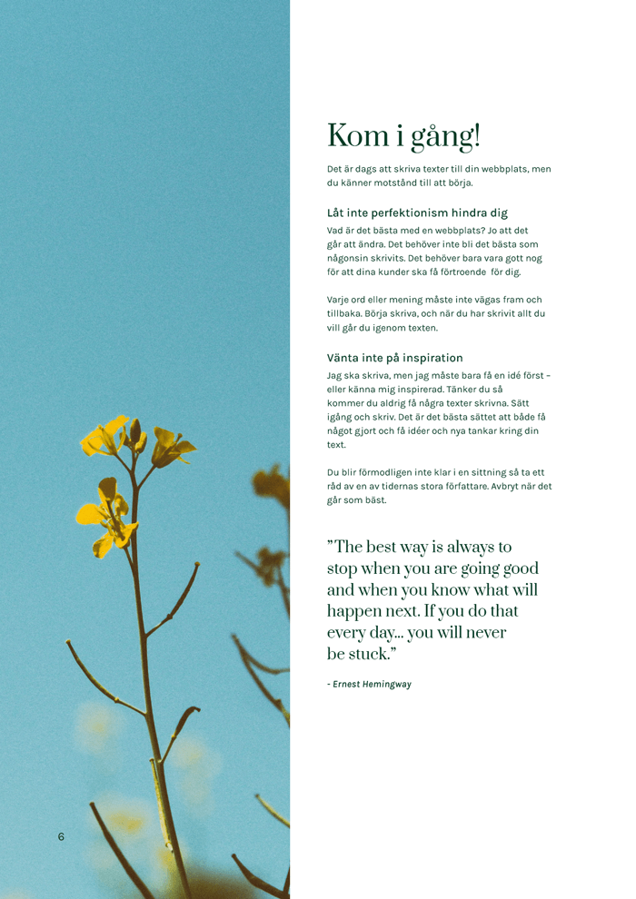 Ska du eller har du precis lanserat din webbplats? Eller kanske är det dags för en översyn och uppdatering? Jag har sammanställt delar av min kunskap, för att du lättare ska komma i gång och för att dina texter ska bli ännu bättre. Guiden passar dig med ett mindre företag och som själv vill arbeta med dina texter.